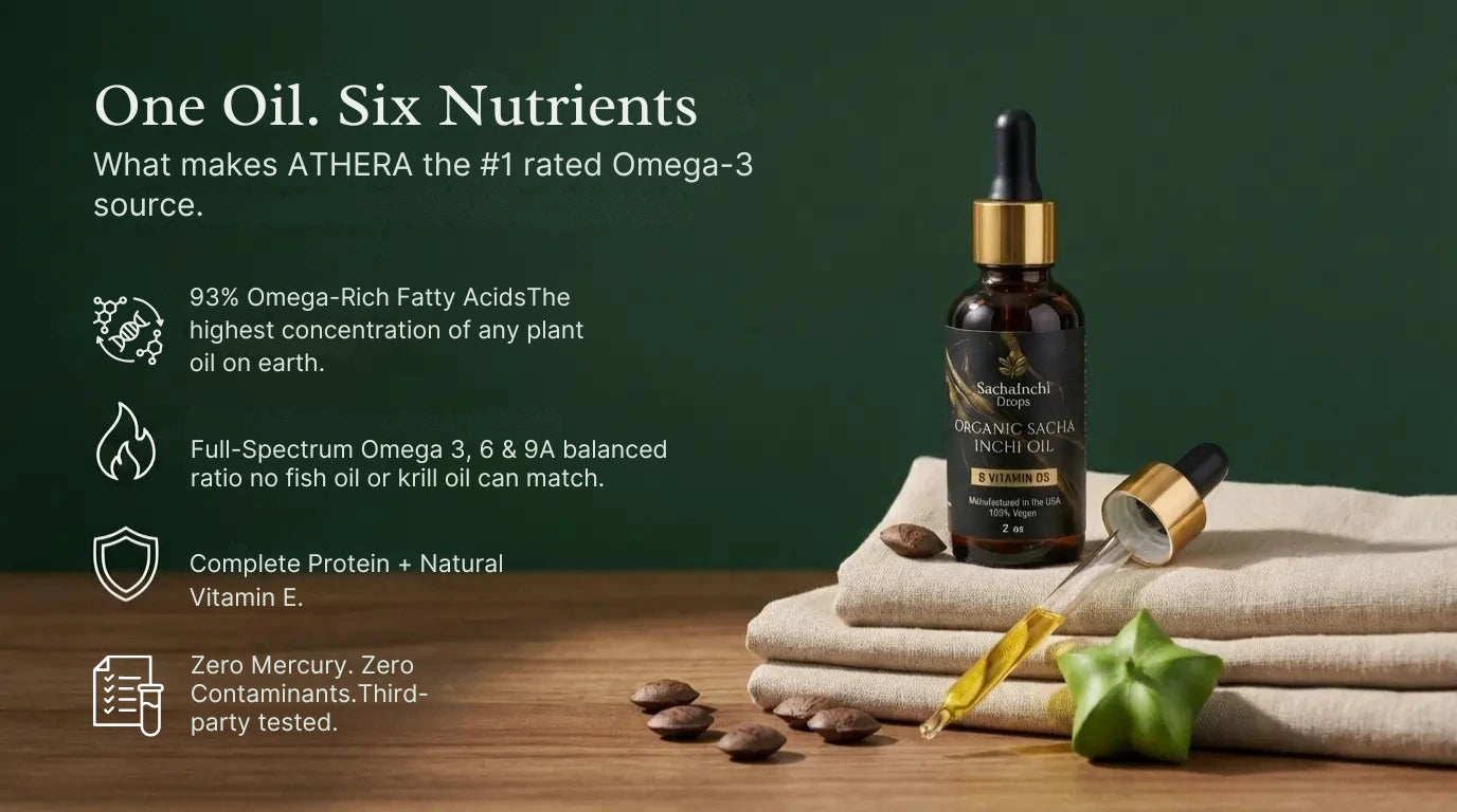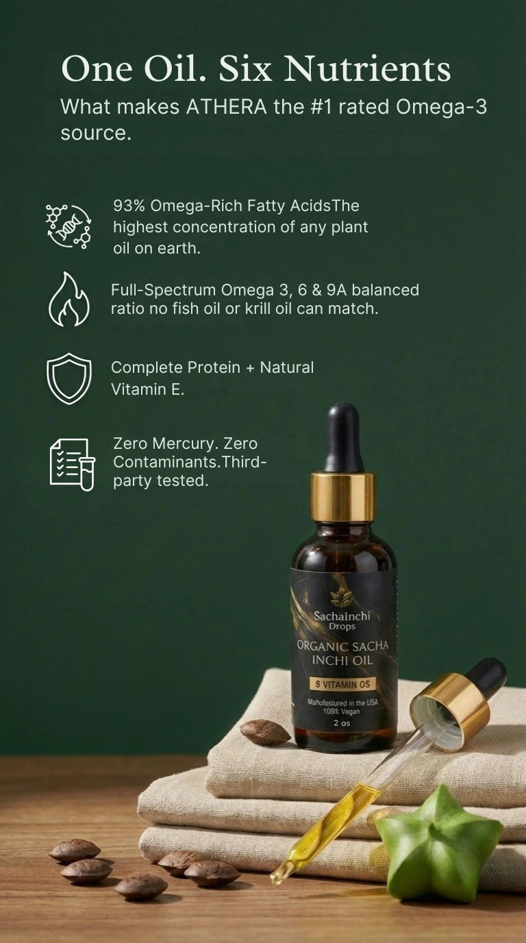 Meet the Amazonian "Gold Standard." One single drop of our Sacha Inchi oil delivers more Omega-3 power than salmon, with 93% unsaturated fatty acids and zero fishy aftertaste.